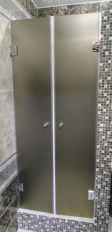 Подвійні двері з гартованого матового скла товщиною 8 мм.