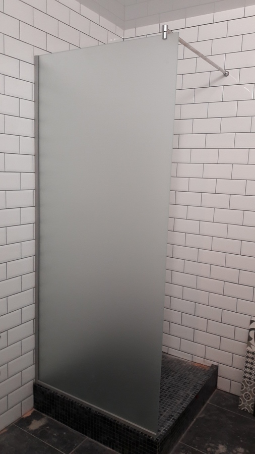Перегородка з гартованого матового скла товщиною 8 мм.